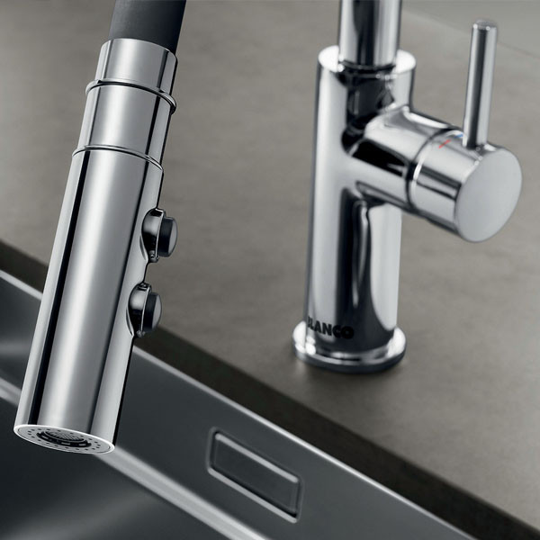 Blanco CATRIS-S Flexo Filter króm kihúzható fejes csaptelep. Matt fekete felülettel. Víztisztító berendezésre csatlakoztatható csaptelep. 3 az 1-ben: vezetékes víz és szűrt ivóvíz közvetlenül egy csapból. Két funkció egy csaptelepben: hagyományos hideg-meleg víz + szűrt víz adagolás. Modern vízszűrős kihúzható fejes csaptelep, 180 fokban elforgatható. Az ivóvíz és a vezetékes víz külön szabályozható. Minden Blanco rozsdamentes acél és SILGRANIT® mosogatókhoz ajánljuk. Magas kifolyó az edények és vázák könnyű megtöltéséhez.