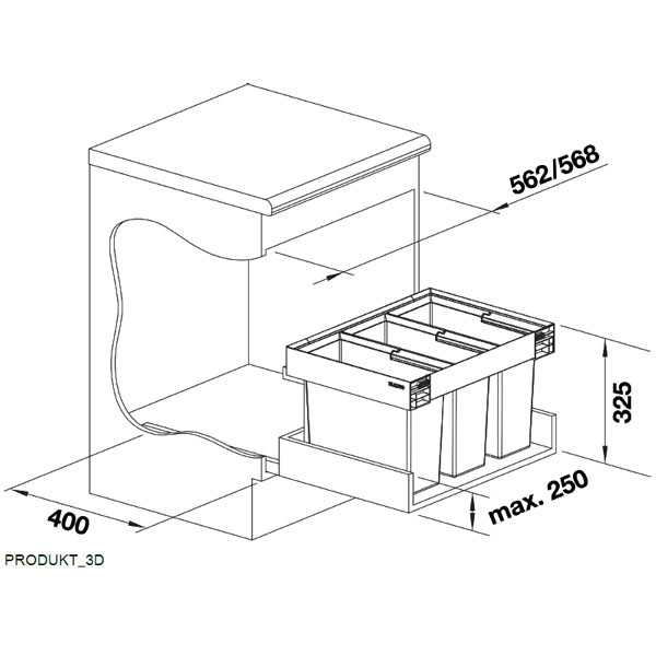 Előnyök: Optimális helykihasználás min 60-as alsó-szekrényeknél, Könnyen tisztítható vödrök