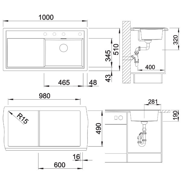 Medence méret(ek): 465x345 mm - bal oldali főmedencével!