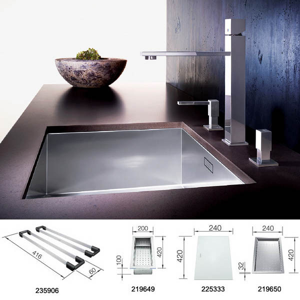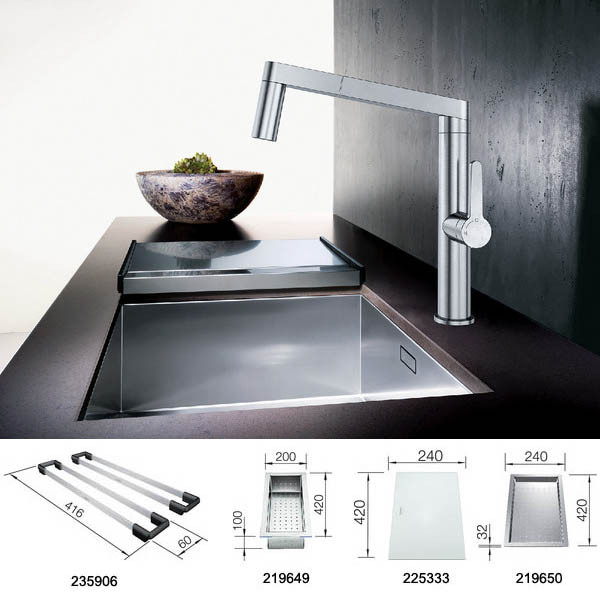 Opcionálisan rendelhető tartozékok: Blanco vágódeszka kőrisfa (230700), Multifunkciós rácskosár (223297), csepegtetőtálca (230734)