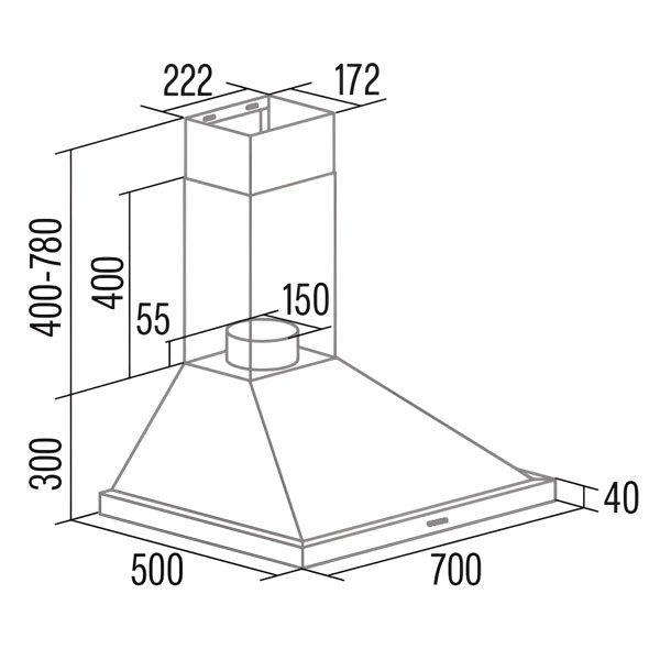 Cata BETA PRO 7000 X inox kürtős páraelszívó 70 cm. Inox. Maximális elszívó teljesítmény 1027 m3/h. Min-max. zajszint 64-76 dB(A). Elektronikus vezérlés 3 fokozatban, utószellőztető funkció. LED világítás. A energia osztály!