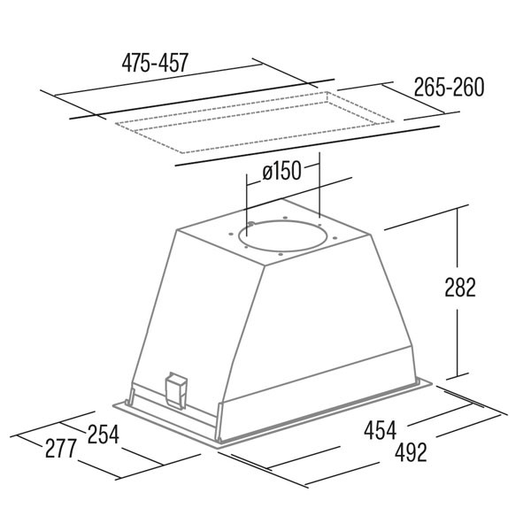 Mérete: 492 mm - (60cm széles szekrénybe/kürtőbe építhető)