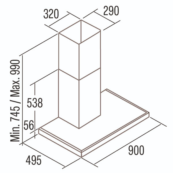 Extrák: A++ energia osztály, touch control (érintővezérlés), zsírszűrő telítettség kijelzőAjánlott légtechnikai csőrendszer: Ø 150 mm