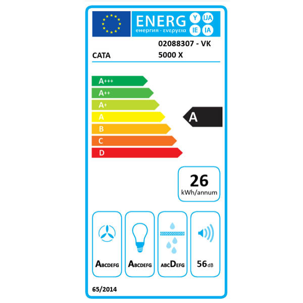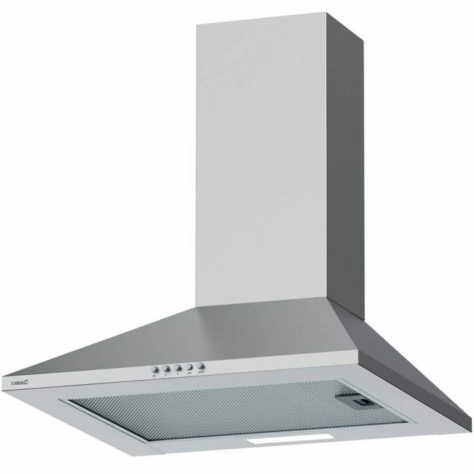 Cata VK-5000 X inox kürtős páraelszívó 60 cm. Inox. Zajszint 56-69 dB(A). Mechanikus nyomógomb 3 fokozatban, maximális elszívókapacitás (légkivezetésnél): 650/477 m3/h. LED világítás. Mosható alumínium zsírszűrő. A energia osztály!