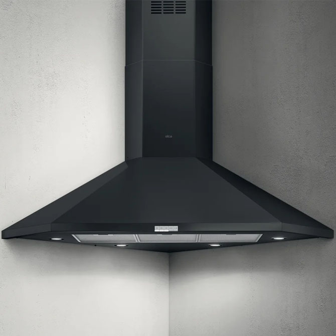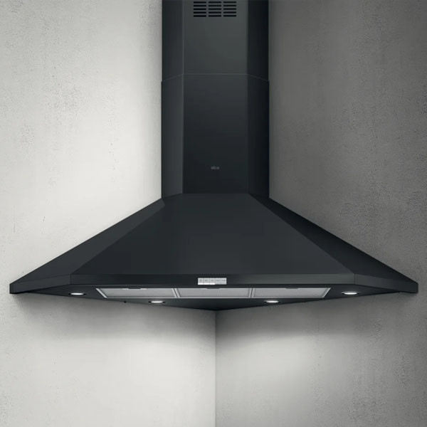 Elica ACUTA BL/F/100 fekete sarok páraelszívó 100 cm. Fekete. Maximális elszívó teljesítmény 800 m3/h. Min-max. zajszint 46-60 (65) dB(A). Vezérlés elektronikus nyomógomb 3+1 fokozatban. LED világítás. A energia osztály!