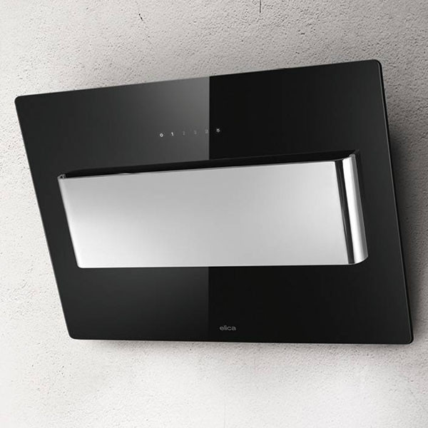 Elica BELT BL/F/80 fekete design páraelszívó 80cm. Fekete üveg. Maximális elszívó teljesítmény 900 m3/h. Min-max. zajszint 46-61 (65) dB(A). Vezérlés érintőszenzoros gomb kijelzővel 3+1 fokozatban, időzítő funkció. LED világítás. A energia osztály!
