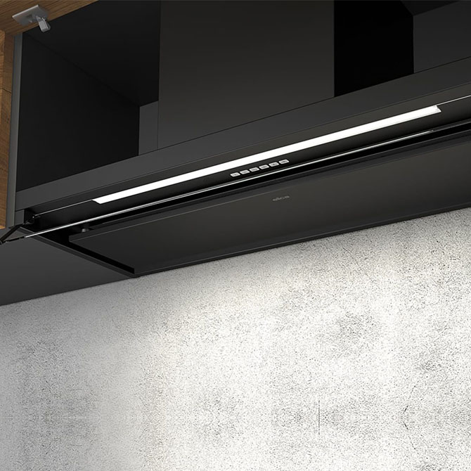 Egyetlen készülék, rengeteg előny. Rejtett kialakítása, tökéletesen illeszkedik a konyhabútorhoz, új generációs motort rejt: csendes, nagy teljesítményű és alacsony energiafogyasztású. Az intelligens érzékelők egész nap figyelik a levegőt, és ha gőzök jelenlétét észlelik, aktiválják a páraelszívót, megvédve a fali egységeket az oldallapokkal és az üveg előlapokkal együtt. A szagelszívó Bluetooth-on keresztül csatlakozik az Elica indukciós főzőlaphoz, automatikusan beállítva annak teljesítményét az észlelt gőzök mennyiségének és minőségének megfelelően. Az okostelefonon vagy a hangasszisztensen keresztül is vezérelhető.