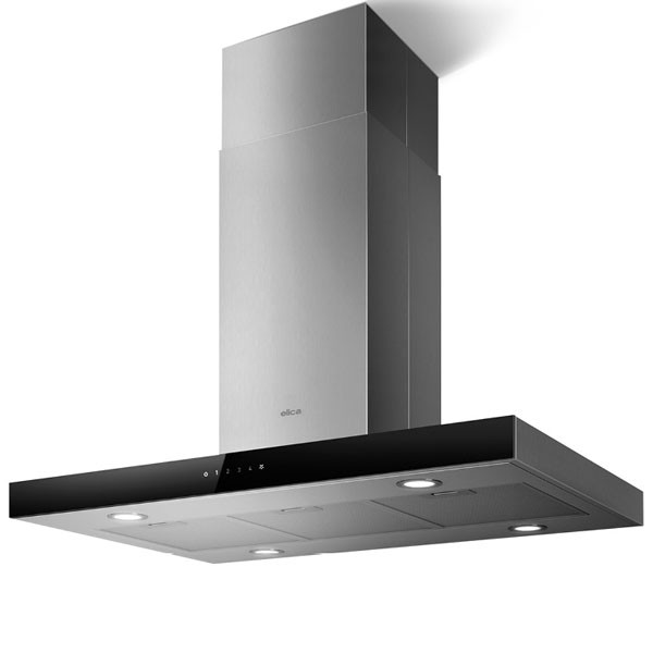 Elica JOY ISLAND BLIX/A/90 fekete sziget páraelszívó 90x63 cm. Inox/fekete front. Maximális elszívó teljesítmény 800 m3/h. Min-max. zajszint 50-67 (72) dB(A). Vezérlés érintőszenzoros gomb kijelzővel 3+1 fokozatban. Halogén világítás. B energia osztály!