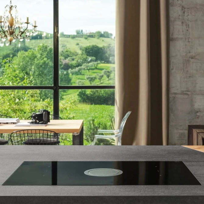 Ez az indukciós főzőlap láthatatlan elszívással rendelkezik. Egyetlen mozdulattal aktiválható és már szűri is a levegőt és egészségesebbé teszi azt.