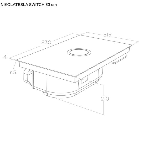 Főzőlap kivágási mérete: 805x409 mm / szintbe építés esetén, külső méret: 830x515 mm belső méret: 805x409 mm