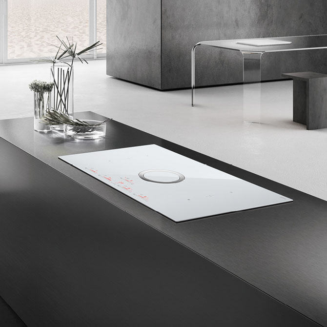 Az Elica korszakalkotó fejlesztésének eredménye: főzőlap és páraelszívó egy készülékben. A hatékony teljesítmény a garancia arra, hogy főzés közben egy időben valósul meg a levegő minőségének javítása ezáltal megteremtve a kényelemet a konyhában. A középen elhelyezkedő szívórész tökéletesen illeszkedik a főzőlapba, a nagy elszívó teljesítmény mellett a csendes műkődés, és az energiahatékonyság jellemzi a készüléket. A készülék egyaránt alkalmazható szabadba kivezetett vagy keringetett ún. szénszűrős változatban. Az újonnan kifejlesztett hosszú élettartamú kerámia szénszűrő garantálja a tökéletes illat- és szagmentes főzést. Megfelelő karbantartás mellett akár 3 évig is használható. A tisztántartást nagyban elősegíti a leeresztehtő folyadéktartály, amely az esetleg a főzőlapra kifolyó folyadékokat gyüjti össze. A készülék telepítéséhez való csőrendszer és egyéb kiegészítő gyárilag csomagolva van a készülékhez.