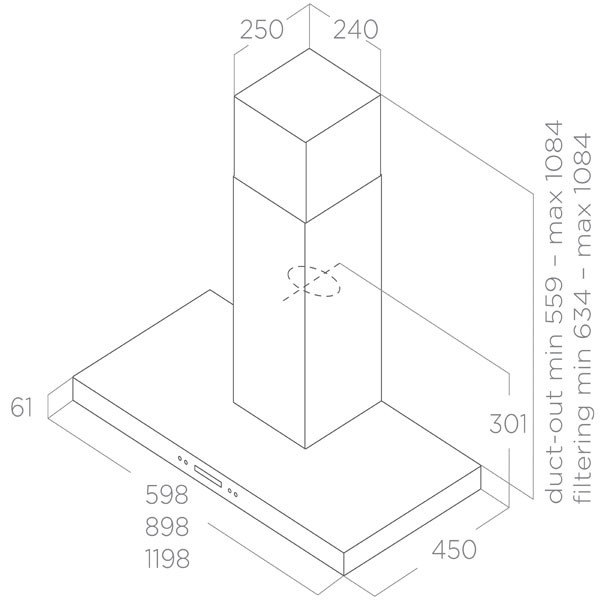 Külső motoros páraelszívó rendszer tervezése és telepítése esetén megfelelő távolságot kell biztosítani a páraelszívó és a külső motor között. Optimális távolság a 3 méter!