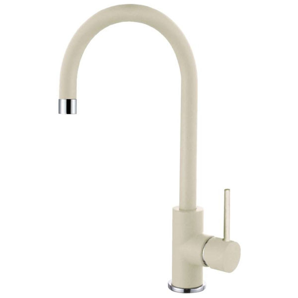 Elleci CLOUD G62 Bianco Antico gránit, álló csaptelep. Elforgatható kifolyócső. Klasszikus design. 7-féle granitek és 3-féle metaltek színben elérhető, jól illik az azonos színű Elleci gránit mosogatókhoz. Nagyobb használhatóság a magas kifolyó révén, könnyen feltölthető magasabb edények, vázák. Minden Elleci mosogatóhoz ajánljuk.