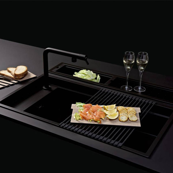 A tartozékoknak köszönhetően a mosogatótálcát saját ízlésünk szerint variálhatjuk annak érdekében, hogy a lehető legoptimálisabban kihasználjuk az XXL-es medence nyújtotta előnyöket és igazi munkaállomássá alakítsuk mosogatónkat.