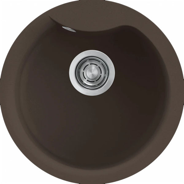 Elleci EGO ROUND G78 Espresso gránit kerek mosogatótál, Ø 485 mm, 50cm-es szekrénymérethez. Medence mélysége 21 cm! Modern letisztult formavilág. 10-féle színben.