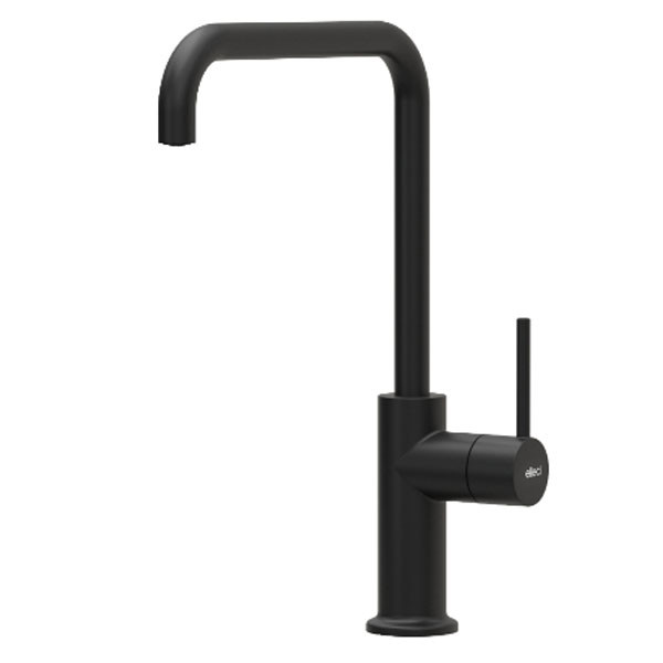 Elleci HYPE matt fekete álló csaptelep. Oldalsó szabályzóval, forgatható kifolyócsővel. Egykaros modern, ívelt, magas, kerámiabetétes csaptelep, jól illik az azonos színű Elleci gránit - kerámia mosogatókhoz. Nagyobb használhatóság a magas kifolyó révén, könnyen feltölthető magasabb edények, vázák. Minden Elleci mosogatóhoz ajánljuk.