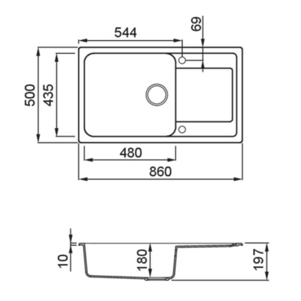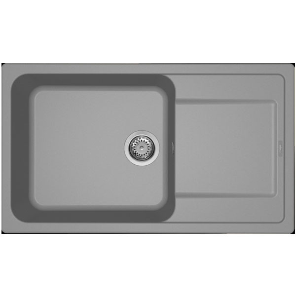 Elleci LIFE 410 G48 Cemento gránit csepptálcás mosogatótál, 860x500 mm, 60cm-es szekrénymérethez. Medence mélysége 18 cm. Egyszerű klasszikus formavilág, lekerekített belső élek jellemzik. 10-féle színben.