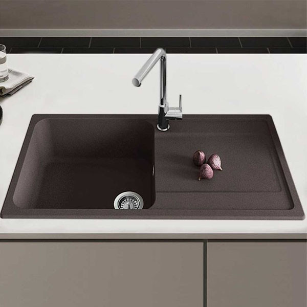 Elleci LIFE 410 G62 Bianco Antico gránit csepptálcás mosogatótál, 860x500 mm, 60cm-es szekrénymérethez. Medence mélysége 18 cm. Egyszerű klasszikus formavilág, lekerekített belső élek jellemzik. 10-féle színben.