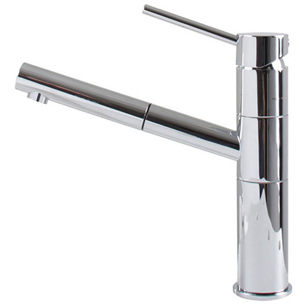 Elleci RENO króm kihúzható csaptelep. Egykaros modern, kerámiabetétes csaptelep, felső szabályzóval, forgatható kifolyócsővel, normál beépítéssel, kihúzható fejjel, Ø35 mm-es furattal. Jól illik az Elleci gránit mosogatókhoz. Minden Elleci mosogatóhoz ajánljuk.