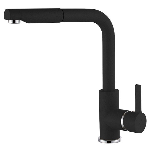 Elleci SHELL PLUS G40 Nero gránit, álló csaptelep. Kihúzható fejjel. Minimalista design. 5-féle granitek színben elérhető, jól illik az azonos színű Elleci gránit mosogatókhoz. Nagyobb használhatóság a magas kifolyó révén, könnyen feltölthető magasabb edények, vázák. Minden Elleci mosogatóhoz ajánljuk.