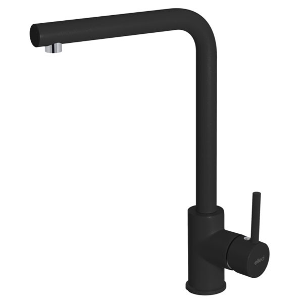 Elleci TRAIL matt fekete álló csaptelep. Elforgatható kifolyócső. Minimalista design. 7-féle granitek színben elérhető, jól illik az azonos színű Elleci gránit - kerámia mosogatókhoz. Nagyobb használhatóság a magas kifolyó révén, könnyen feltölthető magasabb edények, vázák. Minden Elleci mosogatóhoz ajánljuk.