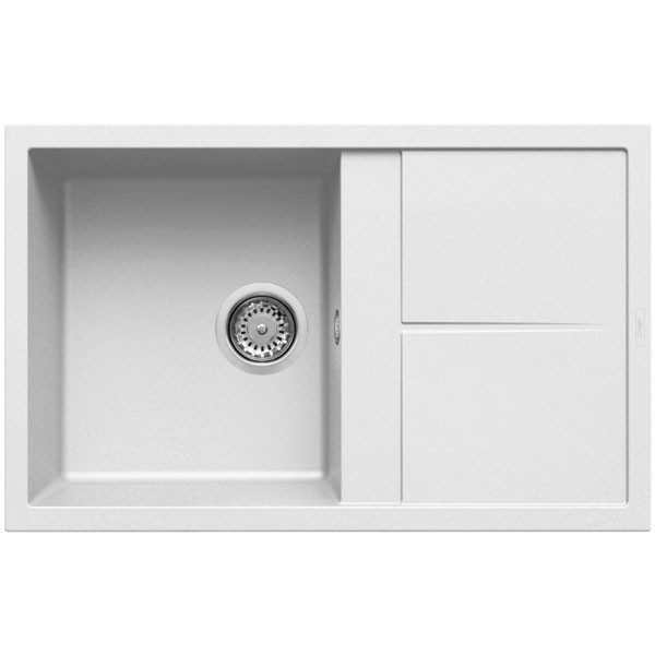 Elleci UNICO 300 K96 White kerámia csepptálcás mosogatótál, 790x500 mm, 50cm-es szekrénymérethez. XL méretű medence. Medence mélysége 20 cm. Modern letisztult formavilág. 2-féle színben.