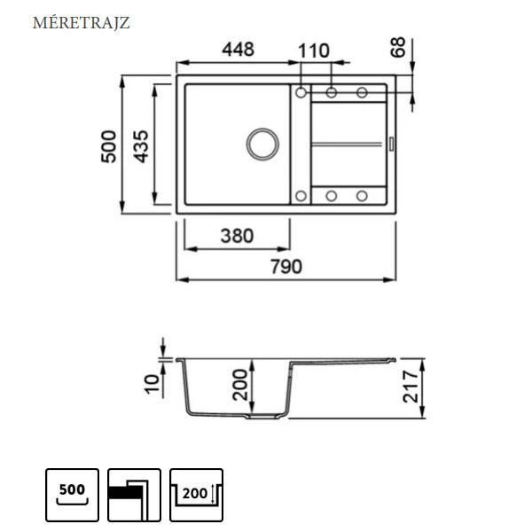Az ELLECI Unico 300 mosogatótálca egyesíti a modern dizájnt a kiváló funkcionalitással. Egy nagyméretű, mély medencéje (200 mm) és minimalista csepegtetője harmonikusan illeszkedik bármilyen konyhai környezetbe. A munkalapra szerelhető mosogatótálca mérete 790x500 mm, ami ideális a mindennapi használathoz, és 500 mm-es szekrénymérettől könnyedén beépíthető.