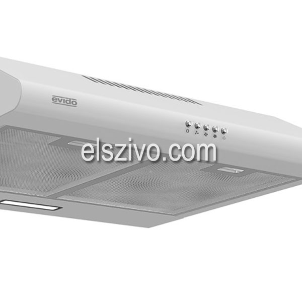 Evido DUALFLOW 50W fehér páraelszívó 50 cm. Fehér. Maximális elszívó teljesítmény 300 m3/h. Min-max. zajszint 47-63 dB(A). Vezérlés mechanikus nyomógomb 3 fokozatban. Mosható fém zsírszűrő. Hátsó kivezetés is! LED világítás. C energia osztály!