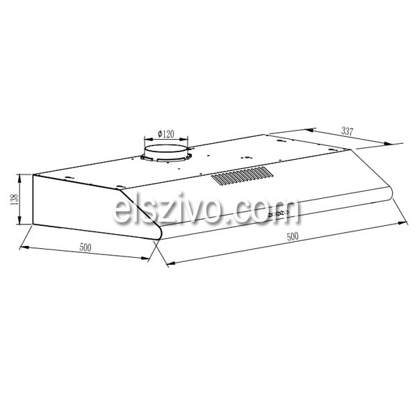 Csőcsatlakozás mérete: 120 mm (Hátsó és felső kivezetés is lehetséges!)