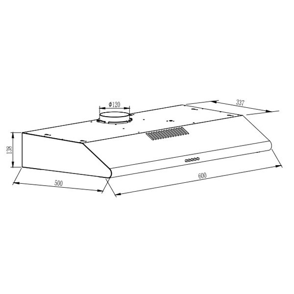 Csőcsatlakozás mérete: 120 mm (Hátsó és felső kivezetés is lehetséges!)