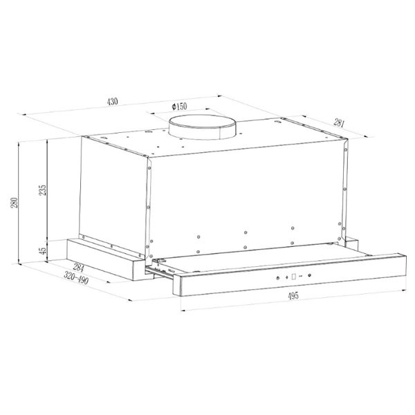 Evido SLIMLUX 50TC inox/fekete kihúzható páraelszívó 50 cm. Fekete üveg előlap/festett szürke ház. Zajszint 56-60 dB(A). Érintőszenzoros vezérlés 3 fokozatban, maximális elszívókapacitás (légkivezetésnél): 500 m3/h. Mosható alumínium zsírszűrő. LED világítás. C energia osztály!