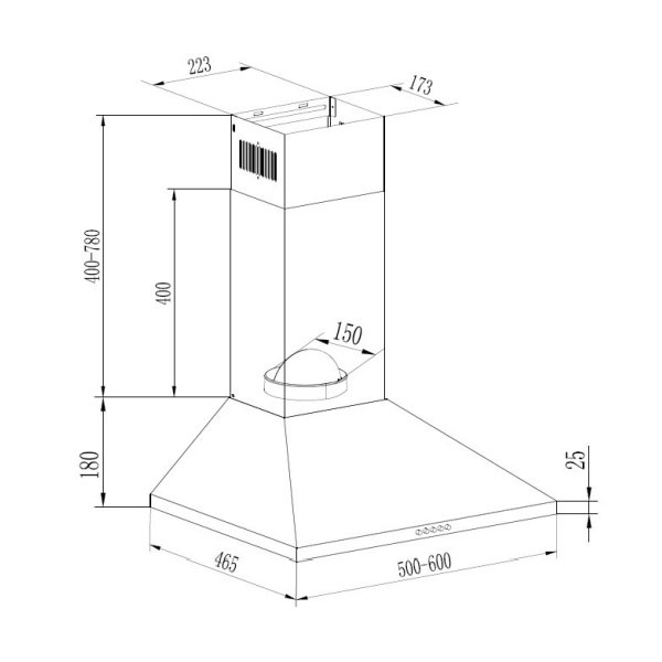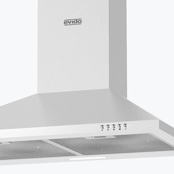Evido TRICOL 50W fehér kürtős páraelszívó 50 cm. Fehér. Maximális elszívó teljesítmény 500 m3/h. Min-max. zajszint 55-65 dB(A). Vezérlés mechanikus nyomógomb 3 fokozatban. LED világítás. B energia osztály!