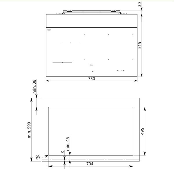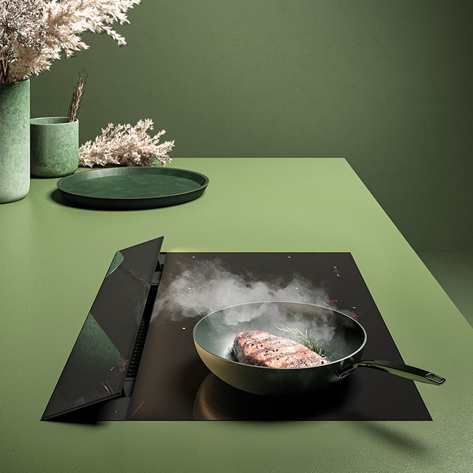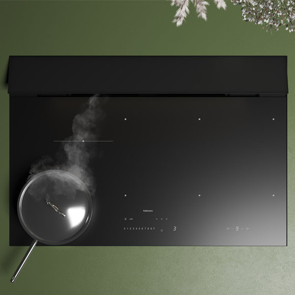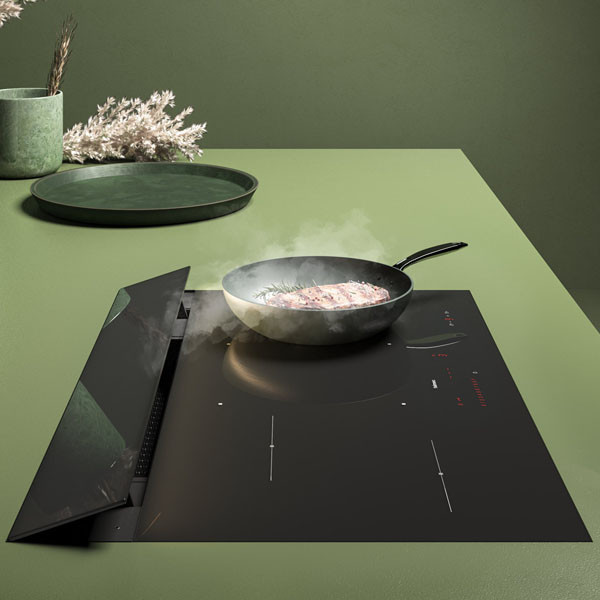 A szívófelület a főzőlap hátsó részén lett kialakítva, fekete üveglappal, fekete acél kerettel, amely ellenáll a felületi karcolásoknak. Az elszívórész fedlapja automatikusan kinyílik, amikor a főzőlap használatban van, elszívja a gőzt és a főzés során keletkező füstöket, majd bezárul.