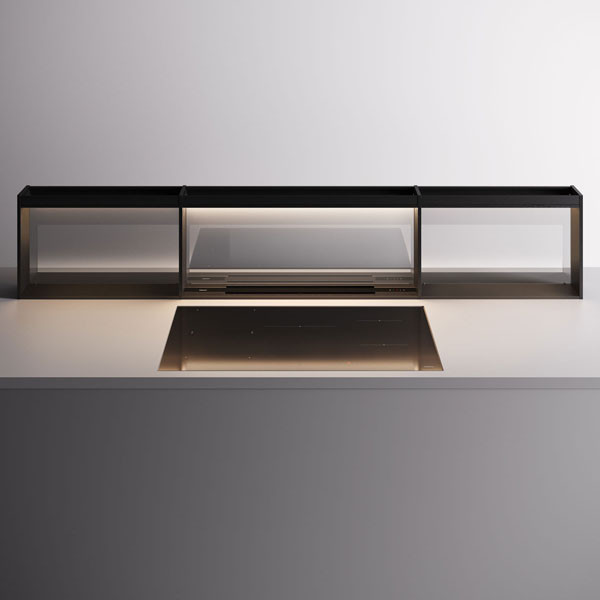A Brooklyn moduláris rendszerhez tartozó oldalsó tárolómodulok a páraelszívó hídstruktúrájához illeszkednek. Szatin fekete alumíniumból és füstüvegből készülnek, így egységes megjelenést biztosítanak a teljes rendszernek. A modulok praktikus tárolóhelyet kínálnak, miközben esztétikusan kiegészítik a központi elszívó modult.