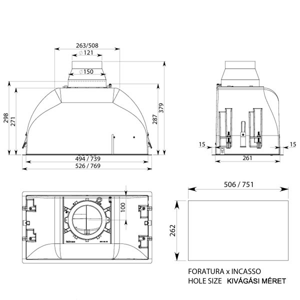 Ajánlott légtechnikai csőrendszer: Ø 150 mmKapható külső motoros változatban is!