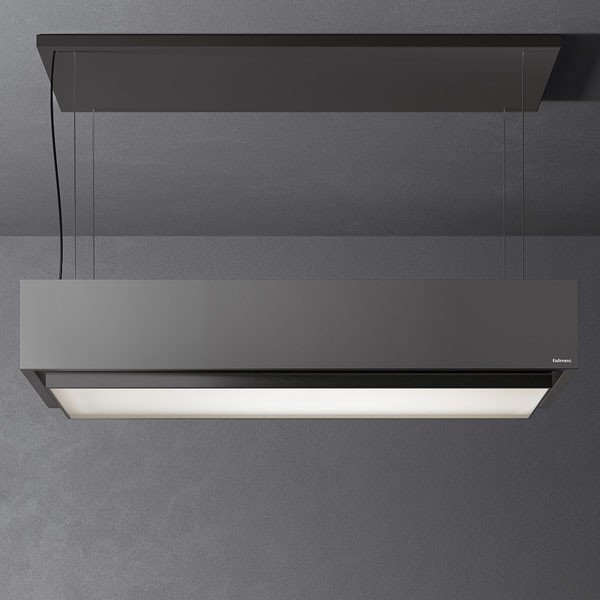 Falmec LEVANTE páraelszívót minimál geometria jellemzi, oldalsó üvegfelülettel, fehér, fekete és szürke színben választható, az alsó oldalra épített panellel. A fény a teljes felületen átvilágít, és a fényes acél keret különleges eleganciát kölcsönöz a terméknek. A páraelszívó helyzete igény szerint fel-le változtatható egy távirányítós motor segítségével. A magasság szükség szerint szabályozható. Amikor nincs szükség rá, teljesen felhúzható a mennyezetre. A készüléket maximum 100 cm lehet lejebb ereszteni a távírányító segítségével.