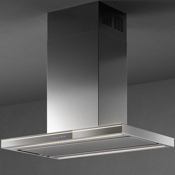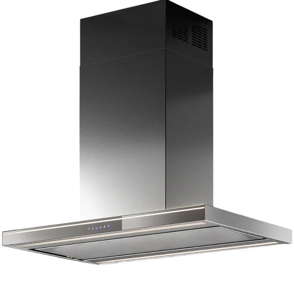 Falmec LUMINA NRS inox sziget páraelszívó 90x58,5 cm. Inox. Maximális elszívó teljesítmény 800 m3/h. Min-max. zajszint 37-45 (53) dB(A). Vezérlés érintőszenzoros 3+1 fokozatban. Időzítő funkció. LED világítás. C energia osztály!