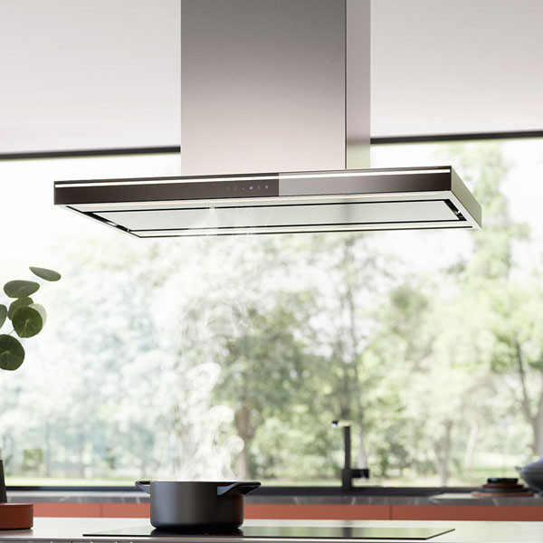 A Falmec odafigyel a részletekre és a konstrukciós kapacitását a LUMINA NRS fejezi ki legjobban, amit az acél előlap és a tökéletesen illeszkedő üvegpanel is kiemel: ez egy rendkívül értékes konstrukciós részlet, amely különböző felületeken kapható.