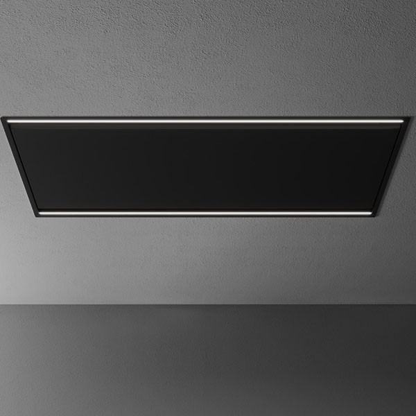 Falmec MIRAGE fekete mennyezetbe építhető páraelszívó 100x52 cm. Festett fekete acél. BRUSHLESS motor. Maximális elszívó teljesítmény 800 m3/h. Min-max. zajszint 40-57 (67) dB(A). Távirányitó vezérlés 3+1 fokozatban. Dialogue system. LED világítás. A energia osztály!