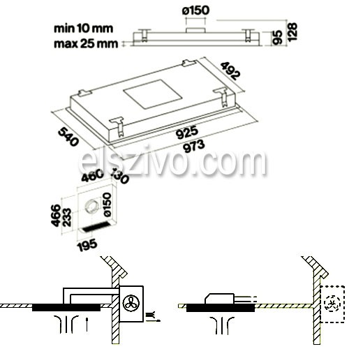 Ajánlott légtechnikai csőrendszer: Ø 150 mm