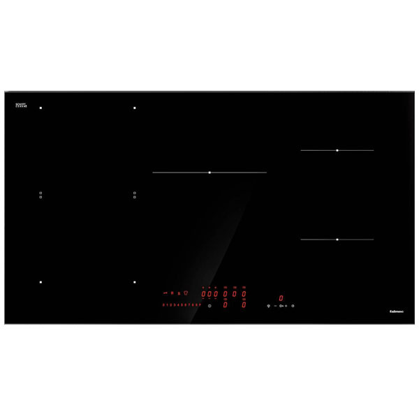 Falmec P01F9051 matt fekete indukciós főzőlap. 89 cm. Matt fekete üveg, szegély nélküli kivitel, Flex Surface technológia, 4 indukciós főzőzóna, mindegyikhez Booster funkcióval. Touch Control vezérlés, Dialogue System, időzítő, maradékhő kijelzés. Gyermekzár, 7,4 kW.