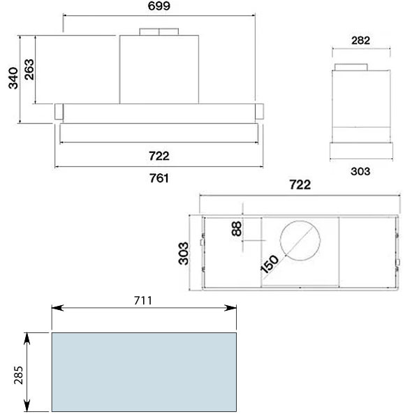 Mérete: 722 mm (min. 80 cm-es szekrénybe!)