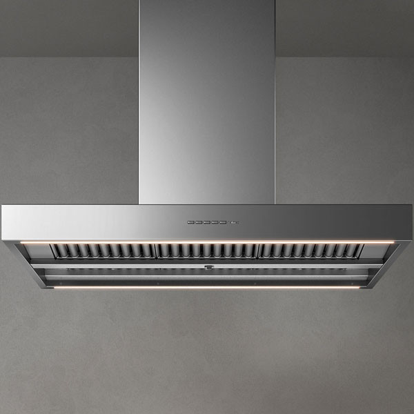 Falmec PLANE NO-DROP 90 sziget páraelszívó 90x60 cm. Inox. Maximális elszívó teljesítmény 800 m3/h. Min-max. zajszint 49-62 (68) dB(A). Elektronikus vezérlés 4 fokozatban, No-Drop antikondenzációs rendszer. LED világítás. B energia osztály!