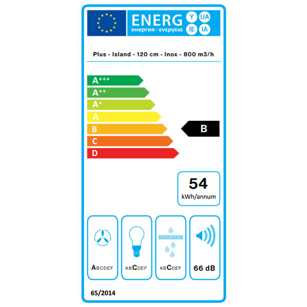 Falmec PLANE PLUS 120 fehér sziget páraelszívó 120x55 cm. Fehér. Maximális elszívó teljesítmény 800 m3/h. Min-max. zajszint 51-66 (69) dB(A). Vezérlés elektronikus 3+1 fokozatban. Időzítő funkció. Dialogue system. LED világítás. B energia osztály!