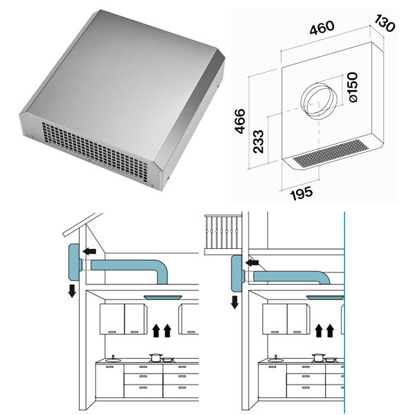 Ajánlott légtechnikai csőrendszer: Ø 150 mmKapható belső motoros változatban is!