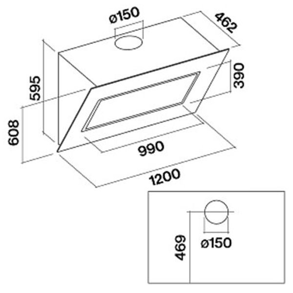 Csőcsatlakozás mérete: 150 mm (hátsó kivezetés is lehetséges!)