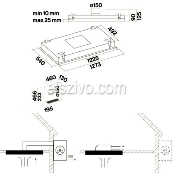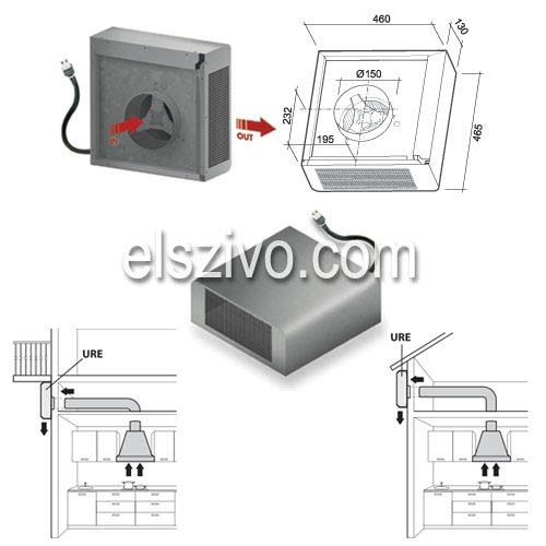 Ajánlott légtechnikai csőrendszer: Ø 150 mm