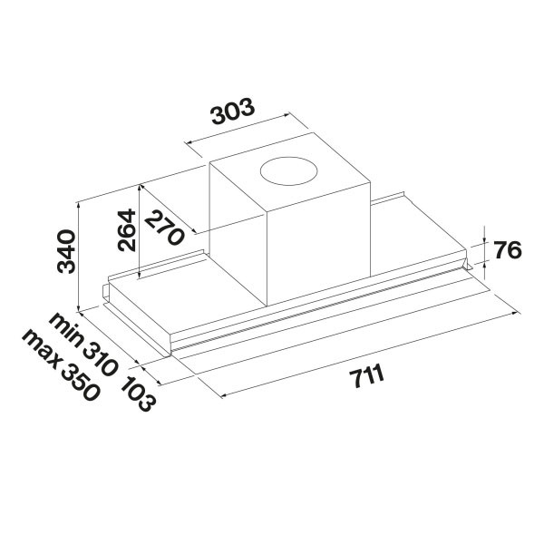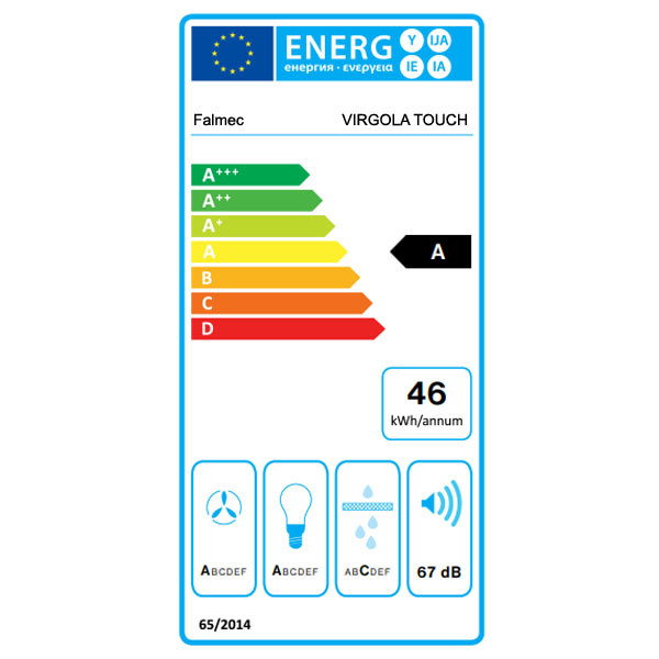 Falmec VIRGOLA TOUCH COMFORT 75 inox beépíthető páraelszívó 75 cm. Inox. Maximális elszívó teljesítmény 600 m3/h. Min-max. zajszint 51-67 (71) dB(A). Vezérlés érintőszenzoros 3+1 fokozatban. Időzítő funkció. LED világítás. A energia osztály!