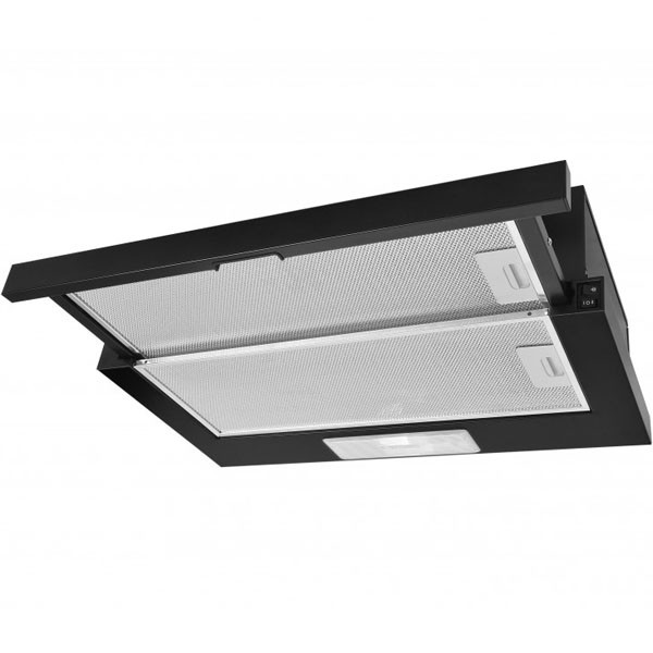 Operis MUNDO FLAT 60 fekete kihúzható páraelszívó 60 cm. Festett fekete. Maximális elszívó teljesítmény 300 m3/h. Min-max. zajszint 53-63 dB(A). Vezérlés mechanikus billenő kapcsoló 3 fokozatban. LED világítás. D energia osztály!
