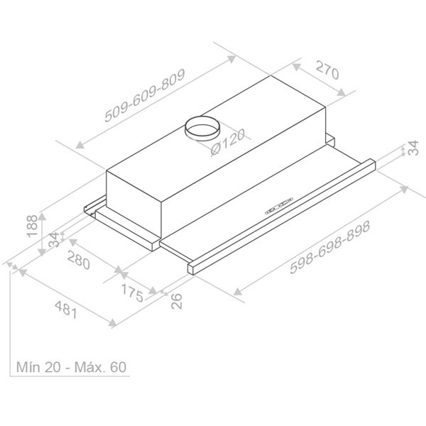 Pando ES 60 inox kihúzható páraelszívó 60 cm szekrénybe. Inox. Maximális elszívó teljesítmény 600 m3/h. Min-max. zajszint 42-60 dB(A). Vezérlés érintőszenzoros 3 fokozatban. Last Time funkció. LED világítás. A energia osztály!